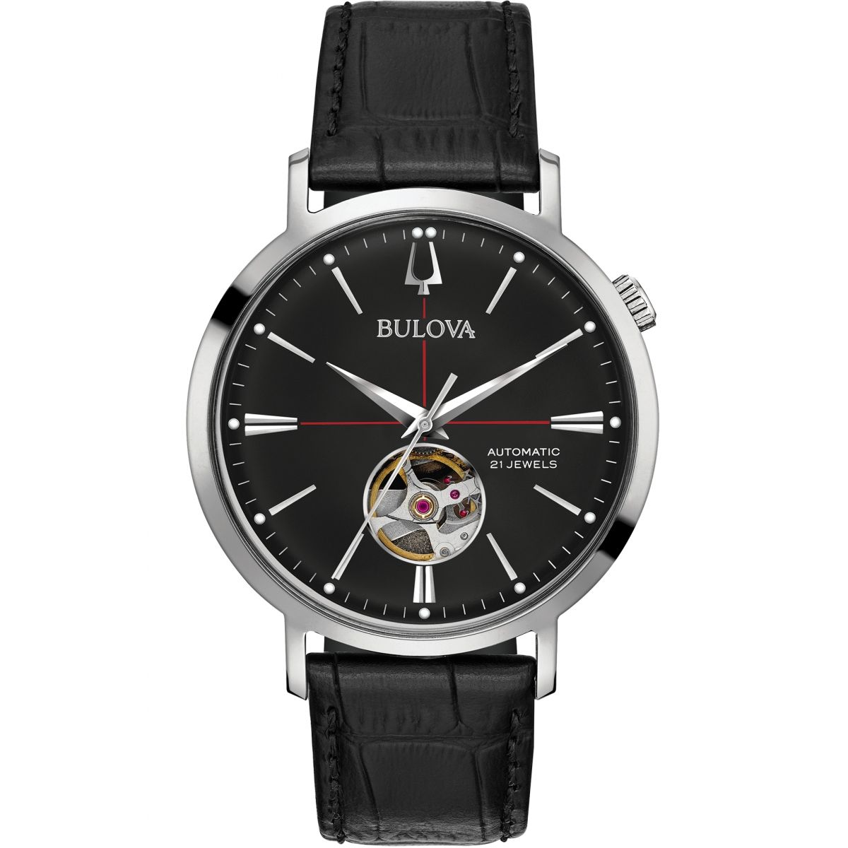 Orologio Bulova automatico, cassa in acciaio cinturino in pelle nera,movimento myota 8215 modificato Bulova con fondello trasparente Caratteristiche tecniche: