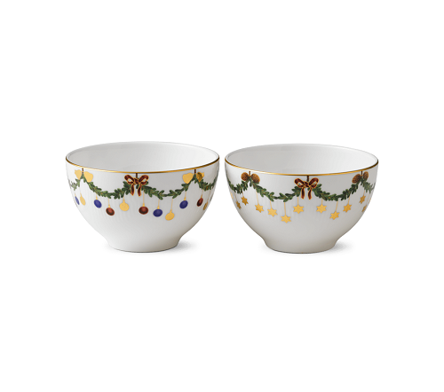 Un regalo di Natale affettuoso o un'aggiunta gioiosa a una collezione personale di Royal Copenhagen, questo set di due ciotole natalizie Star Fluted da 30 cl porta gioia in ogni stanza della casa. Dettagli